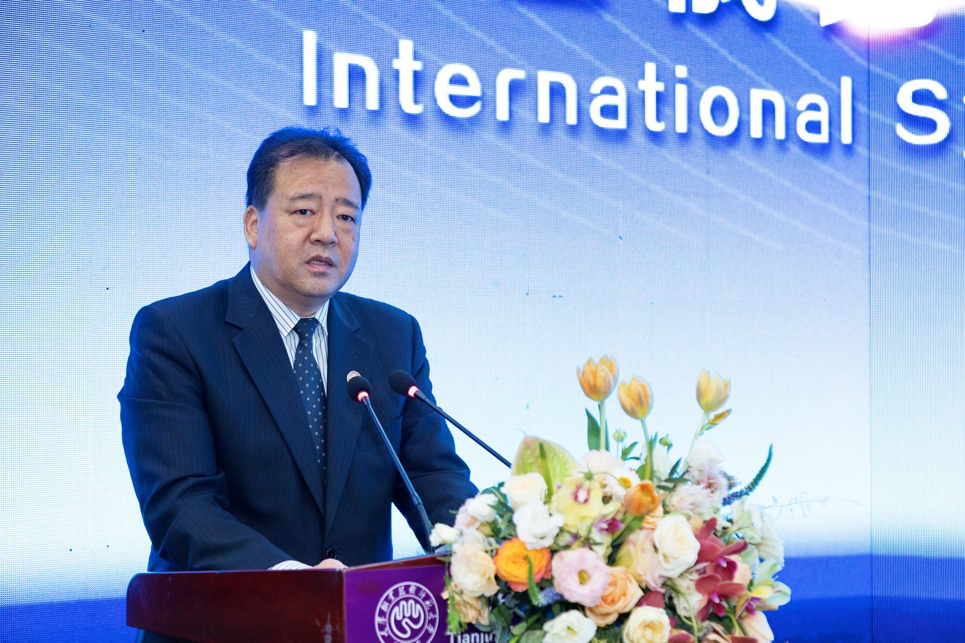 天津事业技能师范年夜教党委文告弛金刚刚致辞 正在落幕式上,弛金刚刚代替天津做事技能师范年夜教对于参会的中中