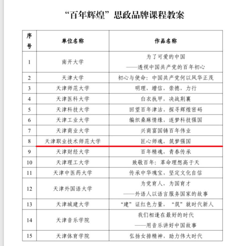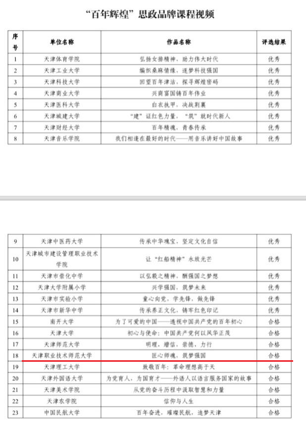 喜报|ued体育“匠心师魂,筑梦强国”思政品牌课程入选天津市“百年辉煌”思政品牌课程