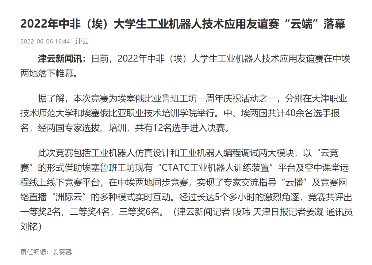 津云:2022年中非(埃)大学生工业机器人技术应用友谊赛“云端”落幕