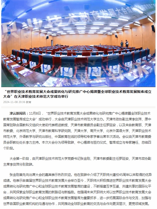 津云:“世界职业技术教育发展大会成果转化与研究推广中心揭牌暨全球职业技术教育发展智库成立大会”在ued体育成功举行